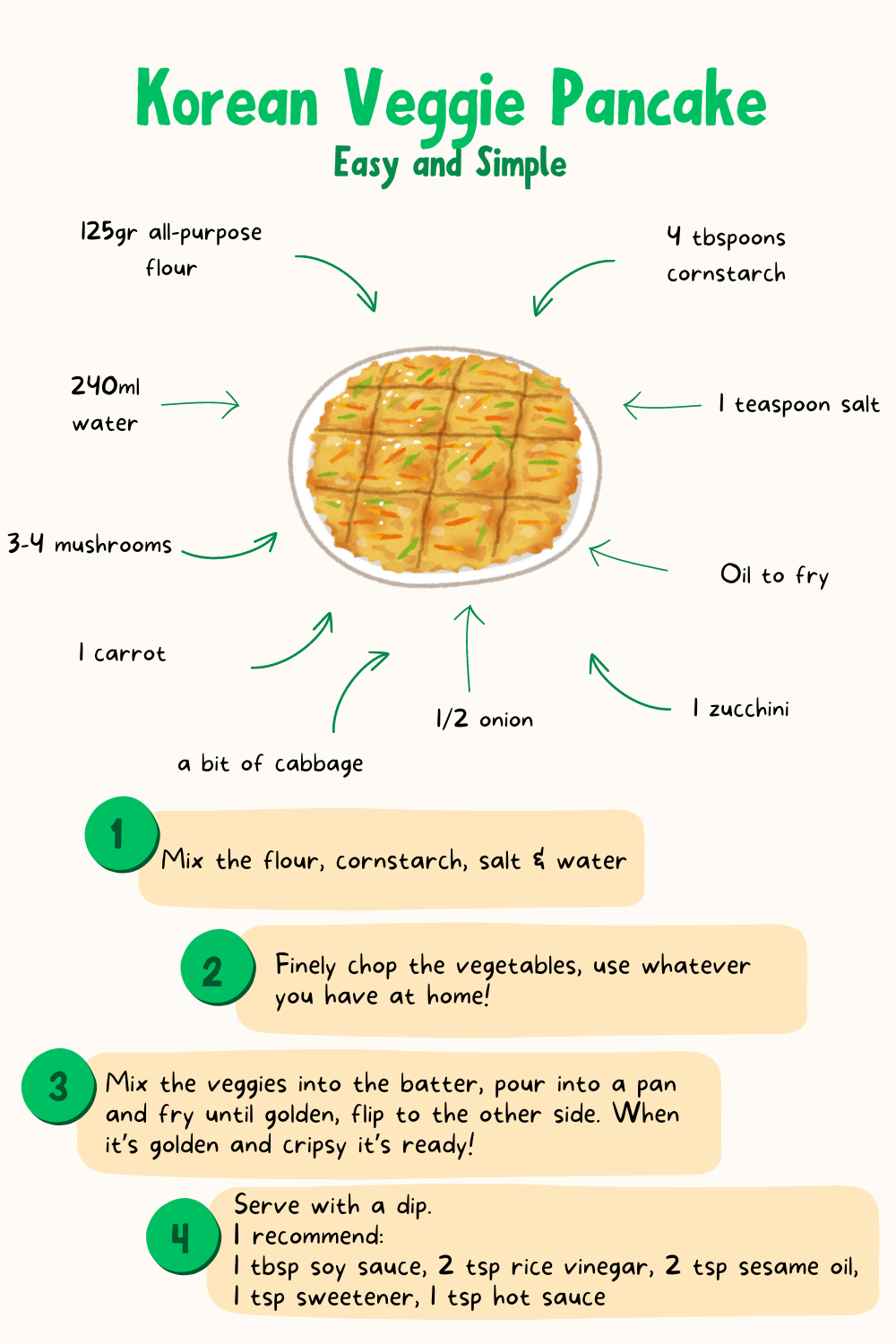I thought I would share with you one of my recent favorites that is perfect for using a mix of various small vegetable leftovers you might have in your fridge and that is a Korean inspired vegetable pancake.